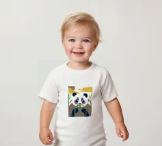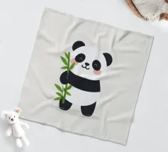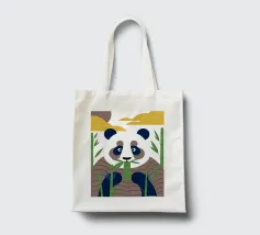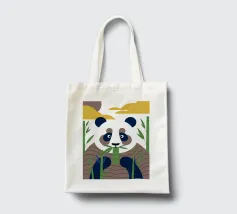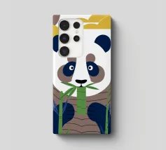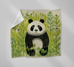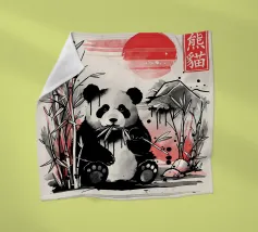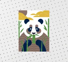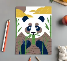 Genießen Sie eine lebendige Illustration mit einem Panda, der Bambus frisst