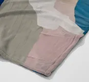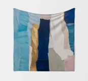 Bunte Flächen stapeln sich wie geologische Schichten in einem abstrakten Patchwork.