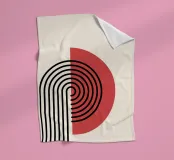 Mit diesem auffälligen abstrakten Kunstdruck verschmelzen Retro- und Modernismus-Ästhetik. Das Design zeigt einen kühnen roten Halbkreis, der einer komplexen Anordnung von schwarzen konzentrischen Bögen und parallelen Linien gegenübergestellt wird, wodurch eine visuell überzeugende und dynamische Komposition entsteht, die an das Grafikdesign der 70er Jahre erinnert. Dieses Stück verkörpert sowohl einen verspielten Retro-Charme als auch ein klares, modernes Gefühl. Mit einer beeindruckenden Auflösung von 7000x5000 Pixeln und einer Auflösung von 300 dpi stellt dieses hochwertige Digitalkunstwerk sicher, dass jede scharfe Linie und jeder leuchtende Farbton mit außergewöhnlicher Präzision wiedergegeben wird, was es zu einer überzeugenden Ergänzung für