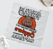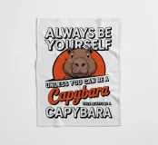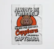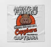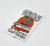 Eine niedliche Wasserschwein-Illustration, umgeben von einem motivierenden Text. Die Worte ermutigen zur Individualität mit einer humorvollen Wendung, die den Charme von Wasserschweinen hervorhebt.