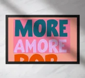 Der Schriftzug "More Amore Por Favor" in großer Druckschrift strahlt in trendigen Farben und bringt italienisches Flair in jeden Raum. Diese fröhliche Botschaft voller Liebe und guter Laune lädt dazu ein, das Leben in vollen Zügen zu genießen!