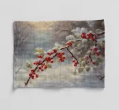 Ein stimmungsvolles Wintermotiv: Ein roter Beerenzweig, bedeckt von glitzerndem Schnee, vor einem sanften Himmel. Die kräftigen Farben und die feine Malweise schaffen eine elegante, naturverbundene Szene, die Ruhe und Festlichkeit ausstrahlt. Ideal für Weihnachtsdeko, Winterkunst, Naturillustrationen und festliche Wandbilder. Perfekt als Weihnachtsbild, Winter Art Print, Naturposter, botanische Illustration, Holiday Poster, romantische Winterkunst, Geschenkidee Weihnachten, Christmas Wall Art und gemütliche Home-Deko.