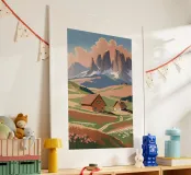 Erleben Sie die ruhige Majestät der Seiser Alm im Frühling. In Albert Klees exklusivem Kunstwerk erwacht die Landschaft zum Leben: blühende Wiesen voller Wildblumen, die sanften Hänge in zartem Grün und das leuchtende Braun der traditionellen Hütten, die im sanften Licht erstrahlen. Der Horizont wird von den mächtigen Gipfeln dominiert, die in die rosa Morgenwolken ragen und die Größe der Dolomiten einfangen. Dieses Bild bringt die Stille und Schönheit des alpinen Frühlings in Ihr Zuhause und lädt Sie ein, in eine Welt der Natur und Gelassenheit einzutauchen.