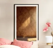 Elegantes abstraktes Wanddesign mit warmen Tönen und weichem Licht Hahnemühle