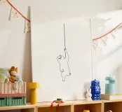 Minimalistische Strichzeichnung einer Katze, die an einer Schnur hängt | Moder Hahnemühle
