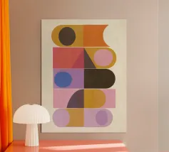 Dieses moderne Poster kombiniert drei aufrechte, farbige Balken mit einer geschwungenen Linie, die sich durch das Bild schlängelt. Die klare Geometrie trifft auf organische Bewegung, die Farben – Pink, Orange, Gelb und Violett – erzeugen Tiefe und Energie. Ideal für kreative Räume, moderne Wohnkonzepte und Design-Liebhaber:innen, die klare Form und Leichtigkeit verbinden wollen.