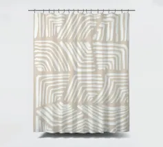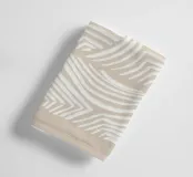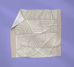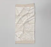 Minimalistisches Kunstwerk mit abstrakten weißen Wellen- und Winkelmustern auf einem warmen beigen Hintergrund. Perfekt für eine moderne, strukturierte Ästhetik.