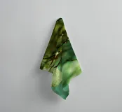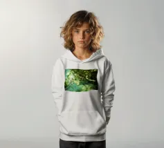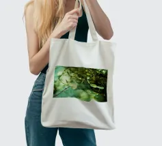 Eine zarte Winterszene mit gefrorenen Eistropfen, die an kahlen Ästen hängen und in einem ungewöhnlichen smaragdgrünen Licht schimmern, das vom nahen See reflektiert wird. Dieses einzigartige Farb- und Frostspiel verwandelt ein einfaches Naturdetail in ein schönes Kunstwerk, das sich ideal für moderne Innenräume, Galerien oder ruhige Wohnräume eignet.