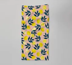 Sommerliches Design mit großen Zitronen auf rosa Hintergrund – fröhliches Muster bringt Frische und gute Laune ins Badezimmer.