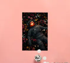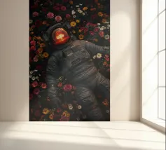 Dieser surreale Weltraum-Kunstdruck zeigt einen Astronauten, der sich in einem Bett aus leuchtenden Blumen ausruht, während im Helmvisier eine feurige kosmische Reflexion leuchtet. Das Kunstwerk, das Science-Fiction mit poetischer Symbolik verbindet, erforscht Themen wie Hoffnung, Erinnerung und die zerbrechliche Schönheit der Menschheit in einem riesigen Universum. Satte Farben, kinoreife Beleuchtung und ausgefeilte Details schaffen einen eindrucksvollen Kontrast zwischen Natur und Weltraum. Dieses Bild eignet sich perfekt für moderne Innenräume, Science-Fiction-Liebhaber und Fans konzeptioneller Kunst und verleiht jedem Wohnzimmer, Schlafzimmer oder kreativen Raum Emotionen, Tiefe und Fantasie.