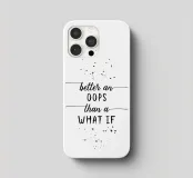 Ein paar Worte und so viel Wahrheit! Ein Design das zum Lebensmotto passt. BETTER AN OOPS THAN A WHAT IF. Bereue lieber einmal etwas, als niemals etwas gewagt zu haben!