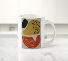 Ein harmonisches Arrangement organischer Formen in einer vom Vintage-Stil inspirierten Farbpalette: Olive, Senf, Koralle, Rouge und tiefe Holzkohle. Dieses Stück verkörpert die moderne Ästhetik der Mitte des Jahrhunderts mit einer subtilen Anspielung auf das Art Deco, mit sanft strukturierten Oberflächen, die an die handwerklichen Drucktechniken der 1950er und 60er Jahre erinnern. Fließende Kurven treffen auf kräftige Farbblöcke und schaffen ein Gefühl von dynamischem Gleichgewicht und zeitloser Eleganz. Es eignet sich perfekt für Wohnzimmer, Studios oder Bürowände und verleiht jedem Raum Wärme, Raffinesse und eine raffinierte retro-moderne Ausstrahlung.