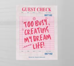 Finden Sie Ihren perfekten Platz mit unserem "Exactly Where You Need To Be" Guest Check Poster. Dieses einzigartige Kunstwerk ist eine Neuinterpretation der klassischen rosafarbenen Gästekarte eines Diners und verwandelt sie in eine kraftvolle und beruhigende Botschaft in fetter, eindrucksvoller Schrift. Es ist ein inspirierendes und erdendes Kunstwerk, das perfekt geeignet ist, um Ihrer Küche, Ihrem Büro oder Ihrem persönlichen Raum einen Hauch von Motivation und Zuversicht zu verleihen. Unser digitales Kunstwerk wird mit einer Auflösung von 7000x5000 Pixeln und 300 dpi erstellt, was eine außergewöhnliche Klarheit und ein wunderschönes, hochwertiges Finish für Ihr Premium-Poster gewährleistet und es zu einem wirklich einzigartigen und bedeutungsvollen Dekorationsartikel macht.