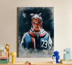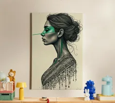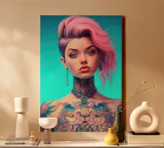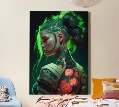 Ein visionäres Porträt von Ada Lovelace – der ersten Programmiererin der Geschichte, neu interpretiert im futuristischen Cyberpunk-Stil. Tattoos, Tech-Gadgets und der binäre Code „0/1“ verbinden historische Genialität mit moderner Ästhetik. Für alle Fans von Female Empowerment, IT-Kultur und Digital Art. Perfekt als Poster für Arbeitszimmer, Galerien oder moderne Lernräume.