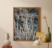 This enchanting motif shows delicate plants covered in filigree ice crystals in a tranquil winter landscape. The soft colours and clear details make this design a perfect representation of the beauty of nature in the cold season. Ideal as a wall mural, mug, mobile phone case or cushion, this motif brings the elegance of winter and the peaceful mood of frosty mornings into any home. Perfect for lovers of nature details and minimalist art.
