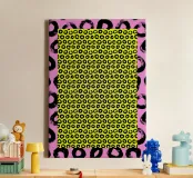 "Loopscape" ist ein immersives Werk, das die Wiederholung in eine visuelle Reise verwandelt. Organische Formen - Halbmonde, Wellen, Ellipsen - wiederholen sich wellenartig und erinnern an eine abstrakte Landschaft. Jedes Muster geht in das nächste über, wodurch die Illusion einer langsamen, fast meditativen Bewegung entsteht. Ideal für ein modernes Interieur, lädt dieses Stück zur Kontemplation ein und etabliert ein Gefühl von konstanter Harmonie.