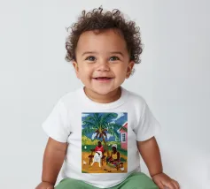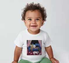 Klassisches, bequemes Baby T-Shirt mit lockerer Passform und praktischen Druckknöpfen.