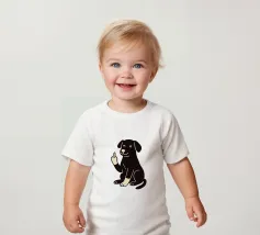 Klassisches, bequemes Baby T-Shirt mit lockerer Passform und praktischen Druckknöpfen.