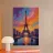 Dieses impressionistische Gemälde zeigt den Eiffelturm bei Sonnenuntergang, der sich glänzend im ruhigen Wasser der Seine spiegelt. Kräftige und lebhafte Striche in Orange, Rosa und Blau gehen harmonisch ineinander über und schaffen ein fesselndes Spiel aus Licht und Farbe. Das Gemälde zeigt Paare, die am Flussufer spazieren gehen, eingetaucht in die romantische Atmosphäre von Paris. Der ikonische Turm erhebt sich, in warme Farben getaucht, und seine verschlungene Struktur leuchtet vor dem dynamischen Himmel. Dieses Kunstwerk strahlt ein Gefühl von Wärme und Intimität aus und zelebriert die zeitlose Schönheit des Eiffelturms in seiner Pariser Umgebung.