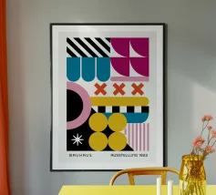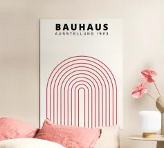 Dieses grafisch klare abstrakte Bauhaus Motiv zeigt ein rhythmisches Dreiecks- und Quadratmuster in kräftigem Rot auf warmem Cremegrund. Die streng geometrische Anordnung erzeugt eine spannungsvolle Balance aus Dynamik und Ordnung und erinnert an klassische Bauhaus- und Midcentury-Designprinzipien. Durch den bewussten Einsatz von Kontrast und Wiederholung wirkt das Muster modern, zeitlos und architektonisch zugleich. Die reduzierte Farbpalette verleiht dem Design Ruhe und Stärke, ohne an Ausdruck zu verlieren. Ideal als Wandbild für Wohnzimmer, Design Poster, moderne Wandkunst.