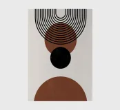 Dieses moderne Design vereint klare Linien und geometrische Formen in Schwarz und warmen Brauntönen auf einem hellen Hintergrund. Die harmonische Anordnung von Kreisen und Halbkreisen mit parallelen Linien verleiht dem Motiv eine minimalistische, zeitlose Ästhetik. Perfekt für Wandbilder, Tassen, Handyhüllen oder Kissen, bringt dieses Kunstwerk einen stilvollen, Boho-inspirierten Look in jeden Raum. Ein vielseitiges Design für Liebhaber moderner und dekorativer Kunst sowie eine ideale Geschenkidee.