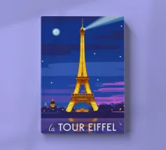 Blick auf den Eiffelturm vom Trocadéro bei Nacht.