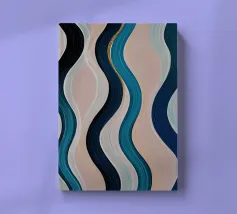 Ein kühnes abstraktes Muster mit einem Hauch von dynamischer Energie, das Bewegung und Fließen symbolisiert. Kräftige Farben, um Themen wie Wasser, Leben und Bewegung anzusprechen. Eine innovative Verschmelzung von Tradition und Moderne für zeitgemäße, minimalistische Innenräume. eine einzigartige visuelle Sprache, die kulturelle Grenzen überwindet.
