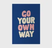 Verleihen Sie Ihrem Raum einen Hauch von Positivität mit diesem lebendigen Kunstdruck, der den Satz "Go Your Own Way" in klobigen, handgezeichneten rosa und weißen Buchstaben auf einem kräftigen blauen Hintergrund zeigt. Das verspielte Design und die aufmunternde Botschaft eignen sich perfekt zur Verschönerung von Schlafzimmern, Büros oder Kreativstudios. Dieser Aufdruck ist ein ideales Geschenk für Geburtstage, Abschlussfeiern oder Weihnachten und weckt Selbstvertrauen und Individualität. Seine auffälligen Farben und sein einzigartiger Stil sorgen dafür, dass er auffällt, und machen ihn zu einer wunderbaren Ergänzung für jede moderne oder eklektische Wohnungseinrichtung.