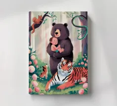 Dieses Kunstwerk zeigt eine mürrisch aussehende Wolke mit einer Gedankenblase, die einen Vogel und einen Bären enthält. Die humorvolle und fantasievolle Szene ist vor einem sanften blauen Hintergrund zu sehen.