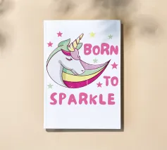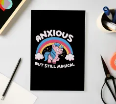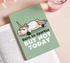 Ein niedliches Einhorn mit Regenbogenmähne sitzt umgeben von Sternen, begleitet von dem humorvollen Text "I cannot brain today, I has the dumb." Das Bild steht vor einem einfarbigen Hintergrund.