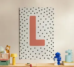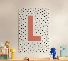 Das verspielte Design mit dem Buchstaben „L“ in kräftigem Rot auf schwarzem Punktmuster ist ein stilvoller Hingucker. Perfekt für Kinderzimmer, moderne Wohnräume oder als Geschenkidee mit persönlicher Note. Die klare Typografie kombiniert mit skandinavisch inspiriertem Muster verleiht jedem Raum einen charmanten Akzent. Ideal zum Kombinieren mit weiteren Buchstaben der Serie.