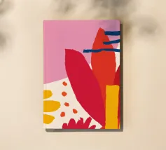 Eine elegante und minimalistische Komposition mit umrissenen botanischen Formen über gedämpften, organischen Farbblöcken. Das Kunstwerk verbindet lineare Zeichnung mit abstrakten Formen für eine anspruchsvolle und moderne natürliche Ästhetik.