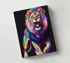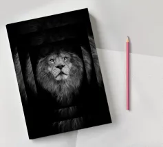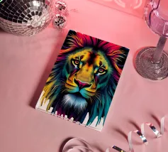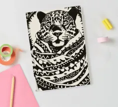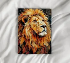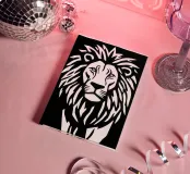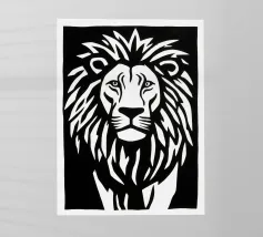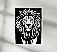 Dieses monochrome Meisterwerk reduziert den König der Tiere auf seine essenziellen Konturen. Die Scherenschnitt-Ästhetik erinnert an expressionistische Holzschnitte der Brücke-Künstler und Franz Marcs Tierdarstellungen. Durch die radikale Schwarz-Weiß-Komposition entsteht monumentale Präsenz – jede Linie der wallenden Mähne, jeder Akzent im durchdringenden Blick sitzt perfekt. Die dynamischen Zacken und Schwünge erzeugen Bewegung und Lebendigkeit trotz flächiger Reduktion. Technisch an Linolschnitt-Tradition angelehnt, jedoch zeitgenössisch. Ein Statement über Alter, Würde und Weisheit.