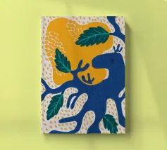 Eine elegante abstrakte Komposition aus sich überlagernden, blattähnlichen Formen in einer weichen, pastellfarbenen Farbpalette, die ein Gefühl von sanfter Bewegung und ruhiger, organischer Harmonie vermittelt.