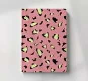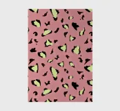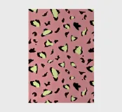 Pop-Leopardenmuster auf pastellrosa Hintergrund, mit hellgelben und schwarzen Details. Dieses mutige und trendige Design bringt einen Hauch von Energie und Stil zu jedem Accessoire oder Möbel, ideal für diejenigen, die einen lebendigen und originellen Look zu ihren Räumen hinzufügen möchten