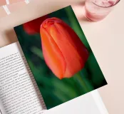 Eine vertikale Nahaufnahme einer roten Tulpe kurz vor dem Aufblühen, deren Blütenblätter in eleganten Schichten eng umschlungen sind. Die zarten Linien und die glatte Textur offenbaren die stille Poesie des Designs der Natur. Dieser minimale, aber eindrucksvolle Druck ist ideal für ruhige Innenräume, Meditationsecken oder als raffinierter Wandakzent im Schlafzimmer.