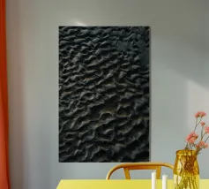 Geschwungene Linien, Grate und wirbelnde Texturen bilden natürliche Muster, die wie Kunstwerke der Natur in die Erde geätzt sind. Jede Maserung fängt das Licht ein und erzeugt weiche Schatten und goldene Glanzlichter, die sich mit der Sonne verändern. Die Muster verändern sich ständig und zeichnen den Rhythmus der Natur auf."