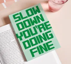 Verleihen Sie Ihrem Raum einen Hauch von Retro-Charme mit diesem beruhigenden Typografie-Kunstdruck, der in fetten blauen Buchstaben "Slow Down You're Doing Fine" zeigt und von einem verspielten Smiley-Gesicht akzentuiert wird. Der weiche beigefarbene Hintergrund schafft eine warme, neutrale Basis, während das Vintage-inspirierte Design Beruhigung und Positivität ausstrahlt. Ideal für Heimbüros, Wohn- oder Schlafzimmer, erinnert dieses Stück daran, das Tempo des Lebens mit Anmut zu bewältigen. Der zeitlose Stil und die aufmunternde Botschaft passen nahtlos in moderne und eklektische Interieurs und eignen sich perfekt als Geschenk für stressige Jahreszeiten, Geburtstage oder Einweihungen.
