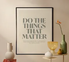 Ein typografisches Zitat-Poster mit aufmunternden Worten und schlichtem Design. Ideale Wandkunst für moderne Wohnungen oder Büroeinrichtungen.