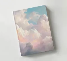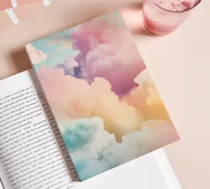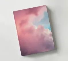 Eine verträumte Landschaft aus flauschigen Pastellwolken füllt die Leinwand, die von sanftem Licht erhellt wird. Dieses abstrakte Design vermittelt ein Gefühl von Ruhe und Gelassenheit und eignet sich perfekt für verschiedene Anwendungen.