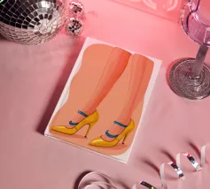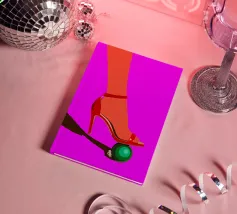 Eine Nahaufnahme, niedrigen Winkel Mode Illustration einer Person Füße tragen stilvolle rosa oder fuchsia Fersen, mit einem fallengelassenen Lippenstift auf dem Boden einen Hauch von Erzählung hinzufügen.