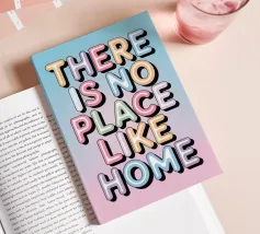 Ein mutiger und nostalgischer typografischer Druck mit "This Must Be The Place" in klobigen Retro-Buchstaben. Perfekt, um mit seiner warmen, optimistischen und Vintage-Ästhetik einen gemütlichen, einladenden Touch in jedes Zuhause zu bringen. Ein farbenfrohes Statement, das jeden Raum aufhellt, ideal für Liebhaber von Retro-Schriften und Dopamin-Dekor. Von showmemars