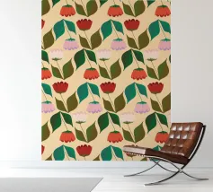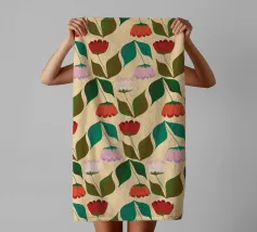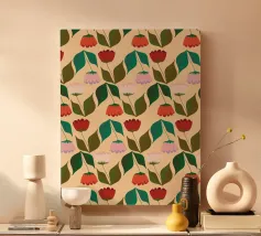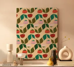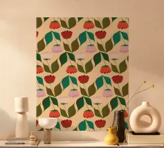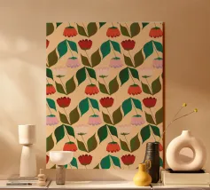 Das „Tulpen in der Reihe“-Design zeigt eine stilvolle Reihung von Tulpen mit klaren Linien und frischen Farben – eine zurückhaltende, aber zugleich lebendige Hommage an die ikonische Frühlingsblume. Die Balance aus Struktur und Natürlichkeit verleiht dem Motiv eine elegante und zeitlose Atmosphäre.
