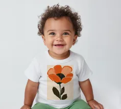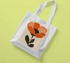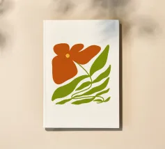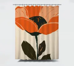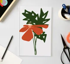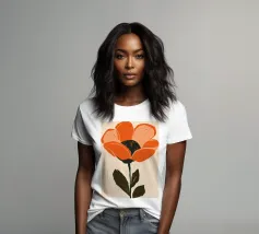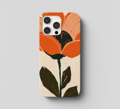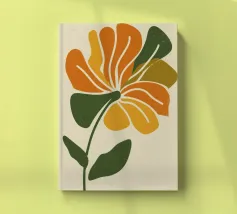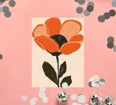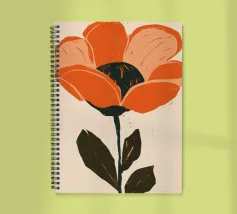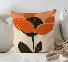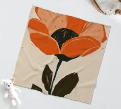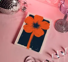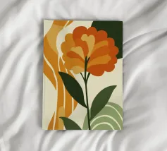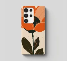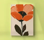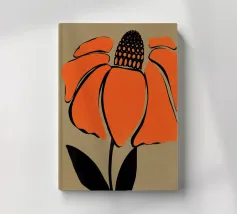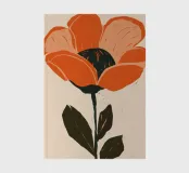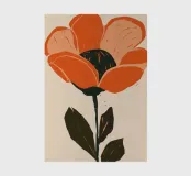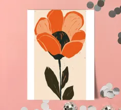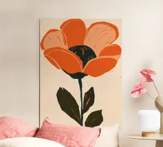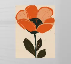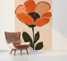 Eine einzelne, große orangefarbene Blüte, die in einem kühnen, ausdrucksstarken und leicht abstrakten Stil dargestellt ist, ist ein kraftvolles und lebendiges Statement für die Schönheit der Natur.