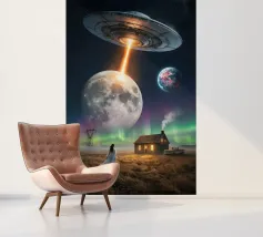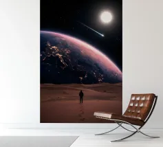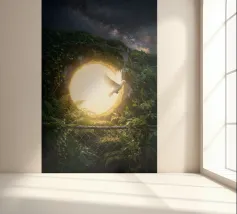 Erleben Sie die Magie des Reisens und des Nachthimmels mit diesem stimmungsvollen Kunstwerk, das eine Hand zeigt, die sanft ein Flugzeugfenster mit Blick auf leuchtende Wüstendünen berührt. Eine Mondsichel leuchtet vor einem tiefblauen Himmel voller Sterne und schafft eine heitere Mischung aus Fernweh und Staunen. Der warme, goldene Sand steht in schönem Kontrast zu den kühlen Nachttönen und fängt das Gefühl von Einsamkeit, Reflexion und Träumen über der Welt ein. Perfekt für Reiseliebhaber, Minimalisten und Fans von filmischen, verträumten Fensterbildern.