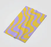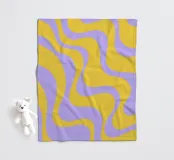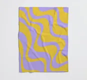 Retro-Muster, abstrakte Wellen, grooviges Design, gelb und lavendel, psychedelische Kunst, farbenfroher Hintergrund, Mitte des Jahrhunderts modern, flippige Tapete, lebendiges Dekor, trippiges Design, 70er Jahre Ästhetik, kühne abstrakte Formen