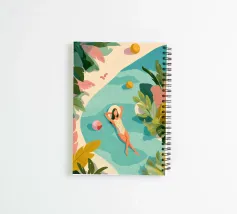Sunlight filters through tropical leaves as she floats peacefully in a pool, completely at ease. The world around her fades into soft color and quiet shapes—beach balls, sandals, and time itself all left behind. A visual exhale, this piece is a reminder to pause, breathe, and let rest be enough.