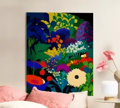 flowers patterns nature garden plants dots bold colors floral organic shapes vibrant foliage abstract forms natural scene botanical bright multicolored landscape textured lush dense