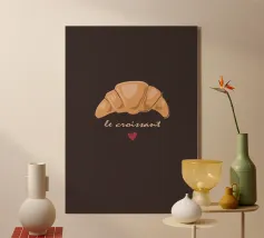 Dieses entzückende Croissant-Design zeigt einen lächelnden Charakter mit rosa Bäckchen und einem schwarzen französischen Beret. Perfekt für Liebhaber von Kawaii-Illustrationen und französischer Backkunst, eignet sich dieses Motiv hervorragend für Frühstücks-Cafés, Bäckereien oder als charmantes Dekorationsstück in Ihrer Küche. Das verspielte Design bringt Freude und einen Hauch von Paris in jeden Raum.