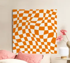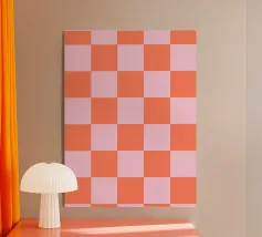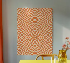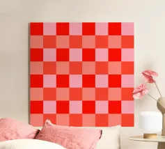 Mit diesem rot-orangefarbenen Schachbrettmuster im Retro-Look wird's heiß. Die groovigen Karos und lebendigen Farbblöcke setzen ein gewagtes Statement und verbinden nostalgischen 70er-Jahre-Stil mit modernem Minimalismus. Ein perfektes Stück eklektischer Wandkunst, um Wärme, Energie und lebendiges Design in Ihr Zuhause zu bringen.